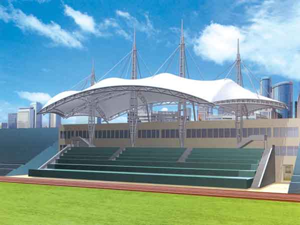 張拉膜看臺(tái)主要用于各類地方體育場主席臺(tái)雨棚,各類學(xué)校體育場看臺(tái)雨棚遮蓋,我公司是國內(nèi)較早從事大懸挑張拉膜結(jié)構(gòu)看臺(tái)設(shè)計(jì)施工的專業(yè)廠家,下面介紹一下我們在寧波市周邊縣市完工的一些張拉膜看臺(tái)設(shè)計(jì)施工案例,我公司先后在寧波周邊承接了寧波職業(yè)技術(shù)學(xué)院張拉膜看臺(tái)雨棚、寧波城市職業(yè)技術(shù)學(xué)院張拉膜看臺(tái)罩棚、浙江醫(yī)藥高等??茖W(xué)校張拉膜看臺(tái)遮陽棚等設(shè)計(jì)施工項(xiàng)目,簡介如下: