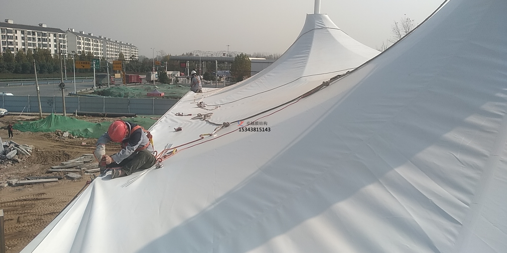 膜結(jié)構(gòu)作為現(xiàn)代建筑設(shè)施的一種,必須嚴(yán)格遵守《膜結(jié)構(gòu)施工質(zhì)量驗(yàn)收規(guī)范》(DB11/T743-2010)來(lái)施工搭建,為提高膜結(jié)構(gòu)工程質(zhì)量、避免工程事故,在施工前必須有詳盡的膜結(jié)構(gòu)施工計(jì)劃, 對(duì)于安裝步驟絕不能馬虎,下面就詳盡介紹一下膜結(jié)構(gòu)固定安裝步驟及注意事項(xiàng)。