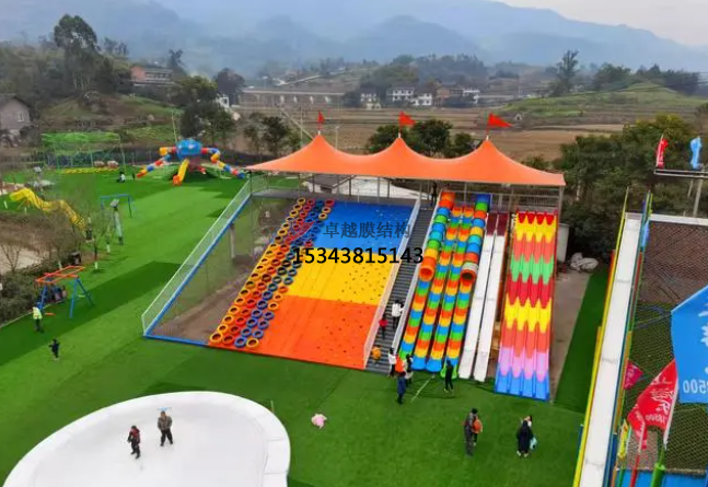 信陽彩虹滑道游樂設備紅色遮陽棚結構設計生產(chǎn)