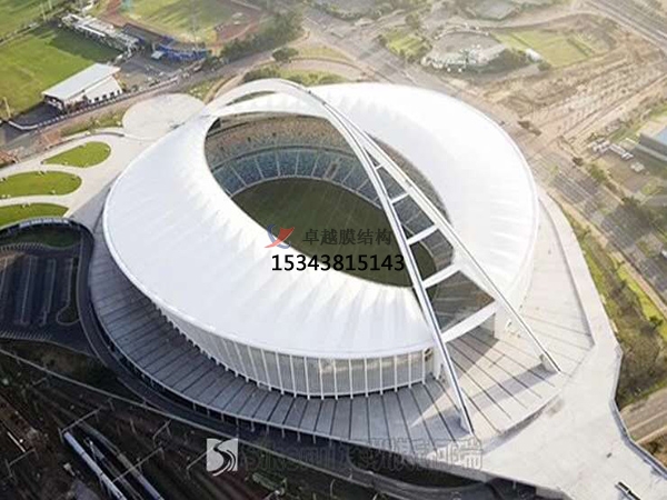 一、體育場(chǎng)的占地面積都比較大,這對(duì)于張拉性能和抗撕裂性能都很優(yōu)越的建筑膜材來說,有了很好的發(fā)揮空間,膜布頂棚可以實(shí)現(xiàn)無柱大跨度覆蓋整個(gè)體育場(chǎng)館,因只有側(cè)面有立柱,中間無需額外支撐,所以,給場(chǎng)內(nèi)運(yùn)動(dòng)人員提供了更加寬闊的運(yùn)動(dòng)空間。