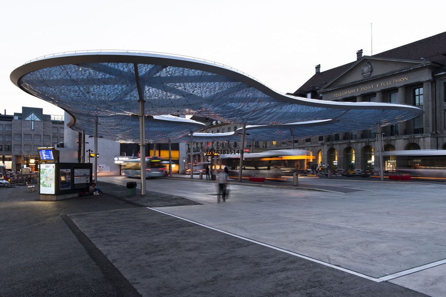 在瑞士,有一個公交車站因它的雨棚而出名。這個雨棚由許多個ETFE氣枕組成,更終形成一個云朵的樣子。給上下班通勤來往的打工人提供了一個短暫的港灣。