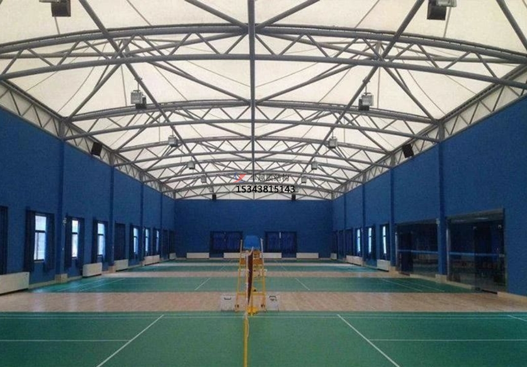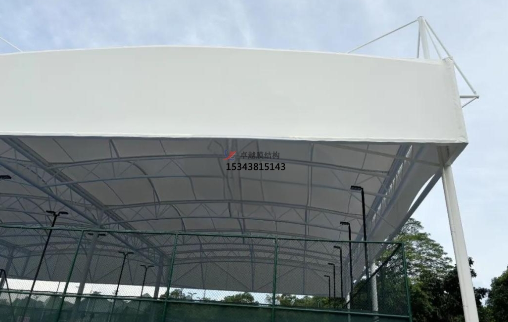 膜結(jié)構(gòu)球場(chǎng)通常使用高強(qiáng)度織物材料,比如PVDF膜或者是PTFE膜,膜材不僅重量輕,而且強(qiáng)度高,能夠承受較大的荷載。這種輕量化設(shè)計(jì)使得膜結(jié)構(gòu)可以在不增加建筑體積的前提下,為體育球場(chǎng)提供更大的使用面積,充分利用建筑空間。