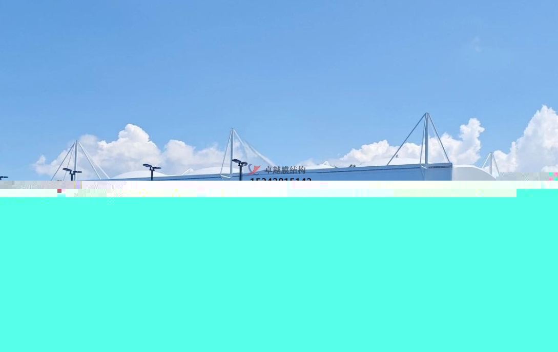 當(dāng)你走進(jìn)體育場(chǎng),一眼就能看到那獨(dú)特的膜結(jié)構(gòu)。它就像巨大的彩色云朵,輕輕地覆蓋在運(yùn)動(dòng)場(chǎng)上空。有的膜結(jié)構(gòu)是白色的,在陽(yáng)光照耀下,白得晃眼,仿佛是一片純凈的雪地;有的呢,是藍(lán)色的,恰似那深的藍(lán)天,讓人看著心里格外舒暢。它不是那種生硬的建筑材料,而是有著柔和的曲線,像被風(fēng)輕輕吹起的綢緞,飄逸又靈動(dòng)。