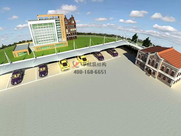 膜結(jié)構(gòu)停車棚主要應(yīng)用于各類商業(yè)地產(chǎn)、住宅樓、寫(xiě)字樓、火車站、機(jī)場(chǎng)、下沉式廣場(chǎng)等遮陽(yáng)遮雨棚,我司是
