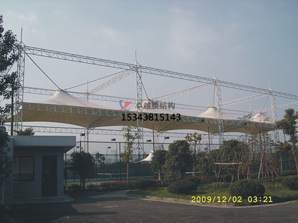 膜材一般由膜材的基質及高分子聚合物組成,即高分子聚合物涂層與基材層按需要的厚度、寬度,通過特定的加工工藝粘合在一起的產物。基質是高強度聚酯纖維,膜材的強度主要由這一層提供,涂層主要保證膜材的密實性;惰性材料涂層保證膜材的自潔性。