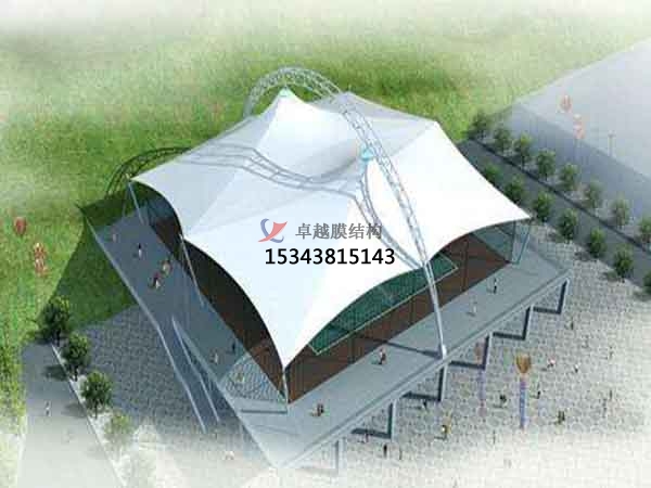 (2 )輕巧而美觀的膜結構用于敞開或半敞開建筑物的遮蔽屋蓋尤為適宜。近年來在足球、田徑等比賽的體育場中,越來越多的看臺挑蓬都采用膜結構。國外很多露天劇院的舞臺、博覽會的展覽館也都以膜材作為頂蓋。在我國廣大地區(qū)的農貿市場也可大力推廣膜結構。
