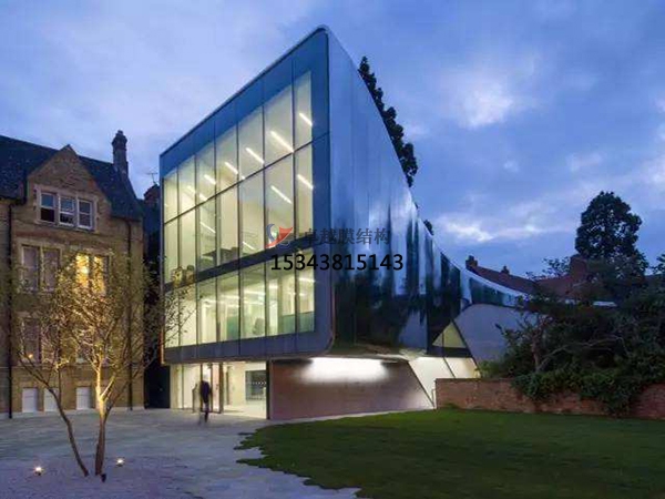 膜結(jié)構(gòu)屋面的采光效果如何?越來越多人選擇膜結(jié)構(gòu)屋面是因?yàn)槟そY(jié)構(gòu)膜材的透光性常被認(rèn)為是更有價(jià)值的特性。白天膜材的光譜透射比(一般為10%~15%)提供了自然的漫射光,從而節(jié)約了大量能源。膜結(jié)構(gòu)屋面膜材的選取、結(jié)構(gòu)張拉形狀以及細(xì)部構(gòu)造都對(duì)視覺環(huán)境有重要影響。