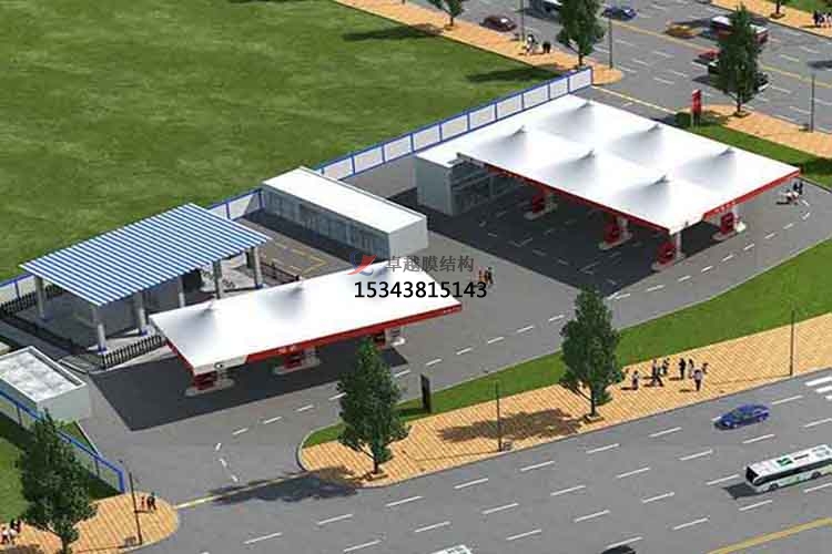 膜結(jié)構(gòu)加油站是一種現(xiàn)代化的永久建筑,膜結(jié)構(gòu)車棚的膜材的更大特點(diǎn)是強(qiáng)度高、耐久性好、防火難燃、自潔性好,不受紫外線影響,使用壽命長(zhǎng),一般15-30年。所以在安裝時(shí)膜材需要非常注意。