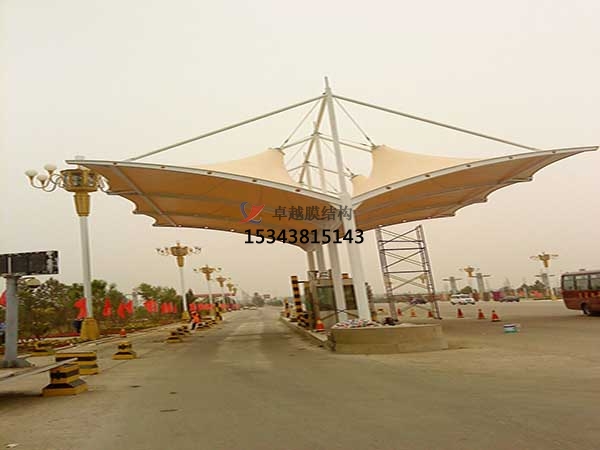 4.更美觀,更藝術(shù)。與傳統(tǒng)結(jié)構(gòu)形式收費(fèi)站多直線的造型相比,膜結(jié)構(gòu)收費(fèi)站本身的特性(材質(zhì)自重輕,支撐方式靈活)使得設(shè)計(jì)師可以在設(shè)計(jì)上充分發(fā)揮天馬行空的想象力,改造出視覺(jué)效果極好的膜結(jié)構(gòu)收費(fèi)站,吸引人的就是其優(yōu)美的曲面造型,與周圍的建筑相得益彰的同時(shí)讓人耳目一新。