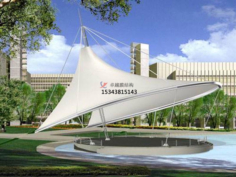 膜材料可濾除大部分紫外線,防止內(nèi)部物品褪色。其對(duì)自然光的透射率可達(dá)25%,透射光在結(jié)構(gòu)內(nèi)部產(chǎn)生均勻的漫射光,無陰影,無眩光,具有良好的顯色性,夜晚在周圍環(huán)境光和內(nèi)部照明的共同作用下,張拉膜景觀表面發(fā)出自然柔和的光輝,令人陶醉。