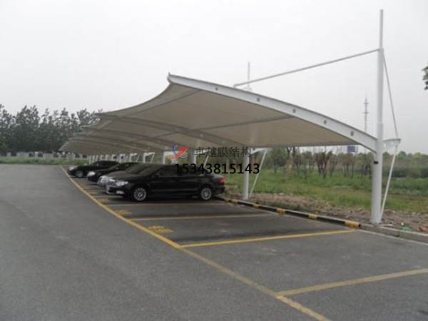 膜結構車棚采用張拉膜結構形式,形式新穎活潑,膜頂平滑過渡,結構美觀、輕巧、整體造型相互輝映,別具一格。膜結構的張拉樣式無形當中增大了空間跨度,輕輕松松的將整個的車棚處被覆蓋,在簡化了建筑結構的同時建筑重量也輕松很多,讓施工更簡便,還降低了施工工人的危險系數(shù),縮短了工程的建造工期。